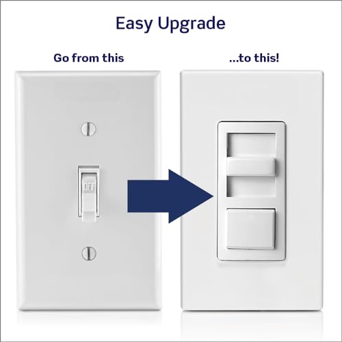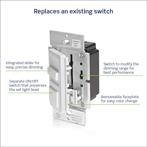 - Leviton IllumaTech Dimmer Switch for Dimmable LED, Halogen and Incandescent Bulbs, IPL06-10Z, White with Ivory and Light Almond Faceplates provides reliable performance and quality- CONVENIENT - an easy way to create a big impact for a minimal cost and customize the light level in any room, for any occasion and in any home