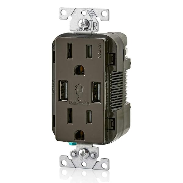 - Leviton 15-Amp USB Charger/Tamper Resistant Duplex Receptacle, 1-Pack, T5632-B, Brown offers reliable performance and quality- SMART - Built-in smart chip recognizes the individual devices charging requirement to optimize the charge- POWERFUL Two high-powered charging ports with 3.6A of charging power