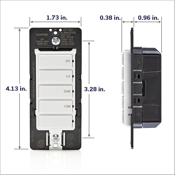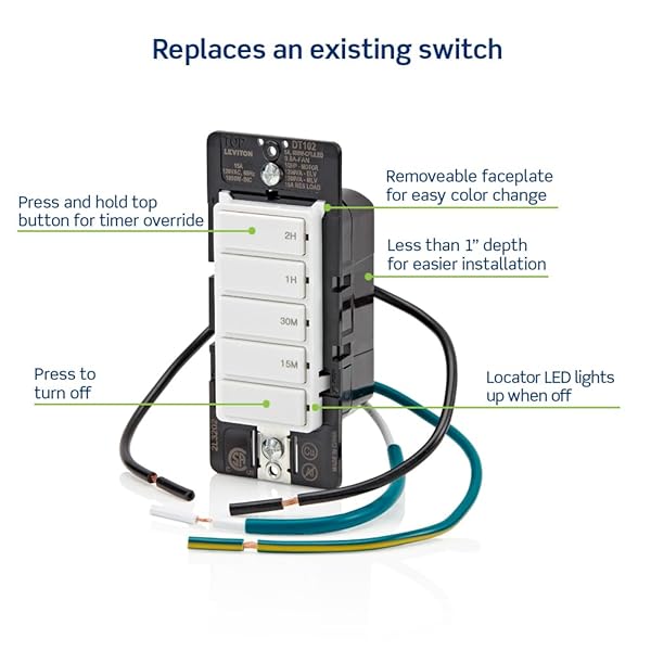 - Leviton Countdown Timer Switch for household lights and exhaust fans, 15-30 min, 1-2 hour, No Neutral Wire Required, Single Pole, 15A, 1/2HP/9.8A Fan/Motor, DT102-1LW, White with reliable performance and quality- PRACTICAL ideal to use for porch and landscape lighting, interior lights, exhaust and attic fans, heat lamps, hot tubs, saunas and more- High performance for daily use- Durable build for long term reliability- Easy to use and maintain