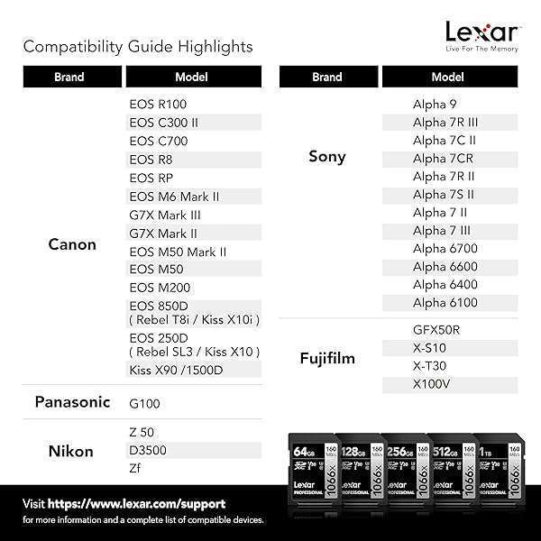 * Lexar 256GB Professional 1066x SD Card, UHS-I, C10, U3, V30, Full HD, 4K, Up To 160MB/s Read SDXC Memory Card, for DSLR & Mirrorless Cameras (LSD1066256G-BNNNU): designed for your dslr or mirrorless camera * The Lexar Professional 1066x SDXC UHS-I Card SILVER Series lets you quickly capture and transfer high-quality photos * Including Full-HD and 4K UHD video with speeds up to 160MB/s read * And up to 120MB/s write * Lexar Professional SD Cards are rigorously tested