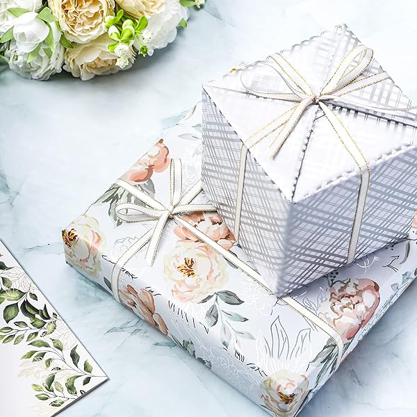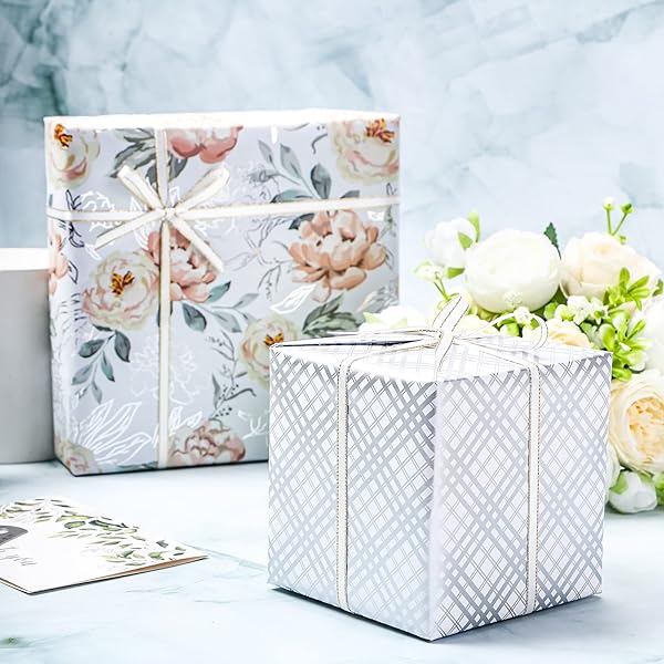 - LeZakaa Reversible Silver Foil Wrapping Paper Roll - Silver Flower & Plaid Design for Wedding, Engagement, Bridal Shower, Anniversay, Mother's Day - 17 inches x 32.8 Feet offers reliable performance and quality