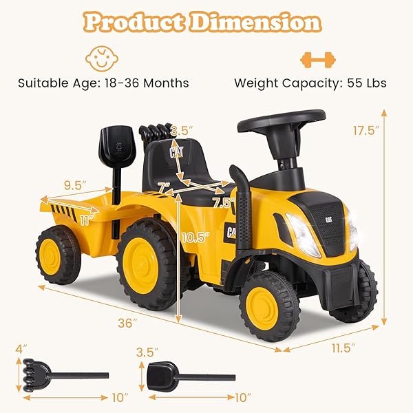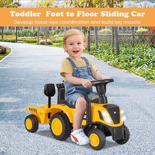 - Licensed Caterpillar Ride on Tractor by OLAKIDS, 2 in 1 Ride on Push Car with Detachable Trailer, Headlight, Horn, Rake, Shovel, Foot to Floor Walker Toy Sliding Truck Gift for Kids Toddler offers reliable performance and quality