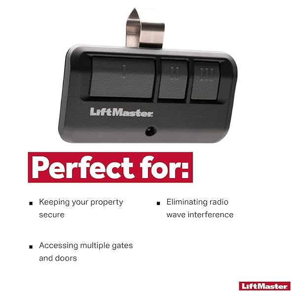 - LiftMaster 893Max Security+ 2.0 3-Button Gate Operator Remote Control with Visor Clip - Pack of 1 provides reliable performance and quality- Multiple Buttons: The 3 buttons allow you to control up to 3 garage door openers or gate operators- Multiple-Use Remote Control: Use with garage doors, gate operators, or MyQ enabled lights- Security+: This system ensures that every click sends a secure code to your garage door opener