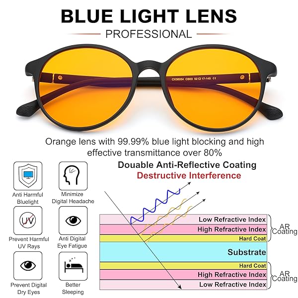 - LIKSMU 99.99% Blue Light Blocking Glasses Computer Glasses for Gaming TV Phone Sleeping Glasses Women Men Professional Filter Anti Eyestrain Vintage Round Eyewear Matte Black Frame Orange Amber Lens offers reliable performance and quality
