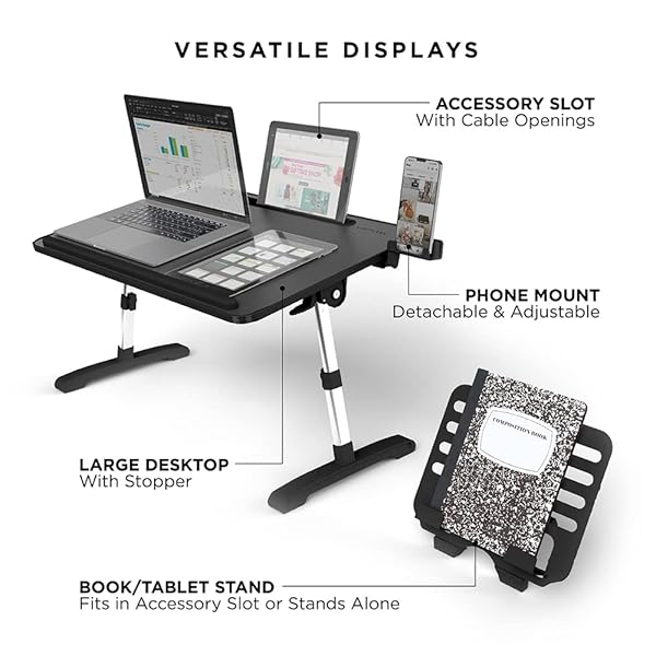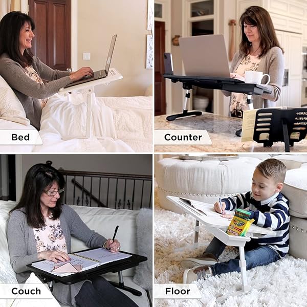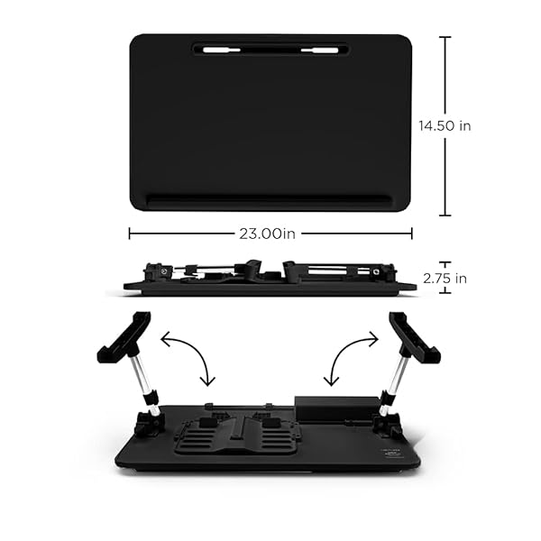 * Limitless TotalDesk Portable Modern Workstation and Lap Desk with Adjustable Height & Tilt (Black): adjustable workstation: customize the height and angle of the totaldesk for optimal comfort while you work * Draw * Write * Or eat! Features a PVC leather finish and a non-slip Desktop Stopper to keep belongings from falling off * BOOK & DEVICE DISPLAY: Easily display a second screen