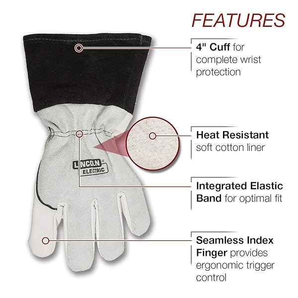 - Lincoln Electric DynaMIG Traditional MIG Welding Gloves | Top Grain Leather | Extra Large | K3805-XL,White offers reliable performance and quality- SUPERIOR COMFORT - The grain leather palm with seamless trigger finger provides excellent dexterity and control while the elastic top hand offers a comfortable form fit- HEAT RESISTANCE - The split leather top hand and internal soft cotton liner offer great heat resistance for many welding applications