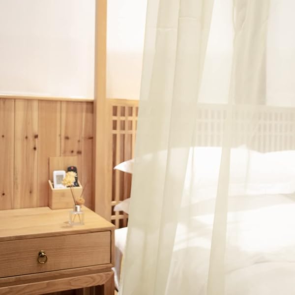 Linentalks Ivory Canopy Bed Curtains for Queen and Full Beds Cream Sheer Drapes 52X228 Tulle Canopy Scarf Valance for Four Post Beds