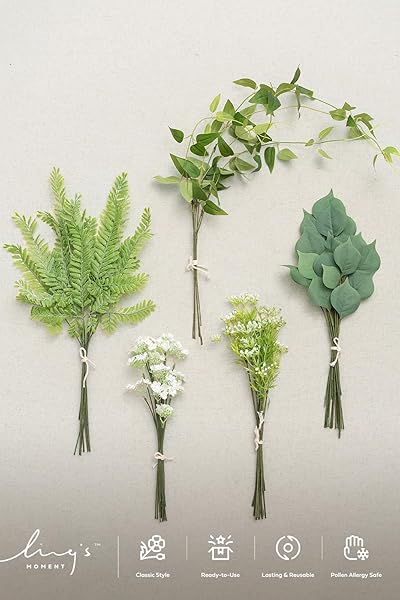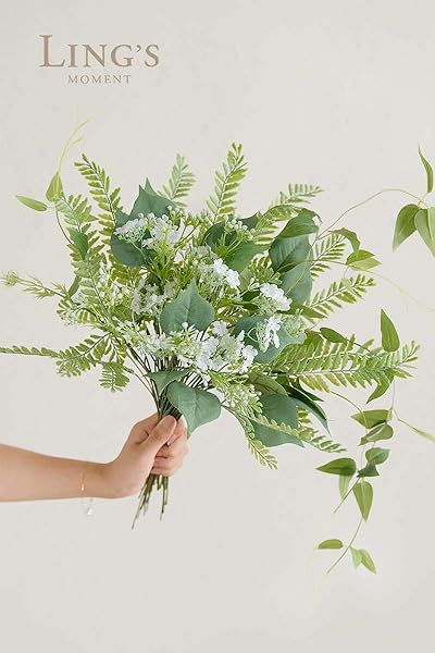 - Ling's moment Artificial Greenery Stems Box Set, 71pcs with 5 Kinds of Faux Greenery Picks for DIY Bridal Bouquets Wedding Floral Arrangement Table Centerpieces, Light Green & White offers reliable performance and quality- What You Get: The cost-effective package included green buds x15, clematis x6, bodhi leaf x23, white pear blossoms x15, southern shield fern x12