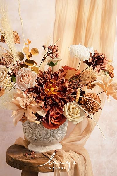 - Ling's moment Burnt Orange Boho Deluxe Artificial Flowers and Greenery Combo Box Set, Rust Sepia Dried Fake Flower for DIY Wedding Bridal Bouquet, Centerpieces Decor, Floral Arrangement Decor, etc. with reliable performance and quality- Rust & SepiaCreate a warm and rustic romance with Lings rust & sepia wedding color collection.- Material & PackageIncluding 28 pcs artificial flowers+ 8 pcs greenery. Silk Flowers: White Peony x2, Coffee Lily x2, Champagne Rose x1, Orange Ro