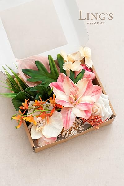 - Ling's moment Fake Flowers Box, Faux Artificial Greenery Stems Foam Roses Anthurium Silk Lily Palm Fabic Flower for Centerpieces Bouquet Wedding Vase Floral Decorations, Sorbet Tropical, Mini Combo with reliable performance and quality- MINI PACKAGING: Box size 8.3"D x 7.5"W x 2.0"H. Suitable for small DIY projects, this small square box can DIY 2 Boutonniere or 2 wrist corsage, or 2 small centerpieces.- REALISTIC LOOK: Choose high quality fabic flower and foam flower. The