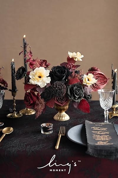 - Ling's moment Fake Flowers Box, Faux Artificial Greenery Stems Foam Roses Dahlia Anthurium Silk Hydrangea Fabic Flower for Centerpieces Bouquet Wedding Vase Decorations, Burgundy & Black, Grand Combo with reliable performance and quality- SQUARE PACKAGING: Box size 11.22"D x 10.24"W x 2.56"H, comes with enough flowers to fuel your creativity, this square box can DIY a medium full enough centerpiece, or 4 small centerpieces.- REALISTIC LOOK: Choose high quality fabic flower