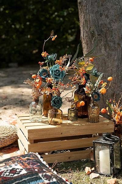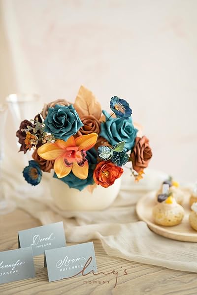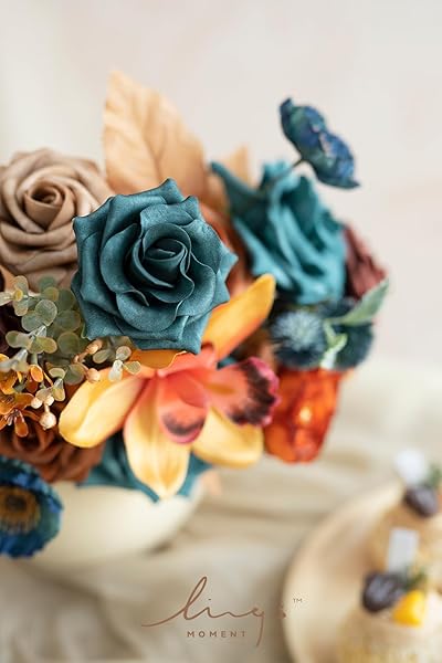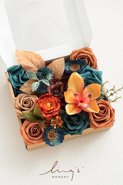 - Ling's moment Fake Flowers Box, Faux Artificial Greenery Stems Foam Roses Gardenia Silk Poppy Orchid Fabic Flower for Centerpieces Bouquet Wedding Vase Decorations, Teal & Burnt Orange, Mini Combo with reliable performance and quality- MINI PACKAGING: Box size 8.3"D x 7.5"W x 2.0"H. Suitable for small DIY projects, this small square box can DIY 2 Boutonniere or 2 wrist corsage, or 2 small centerpieces.- REALISTIC LOOK: Choose high quality fabic flower and foam flower. The d