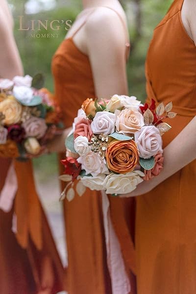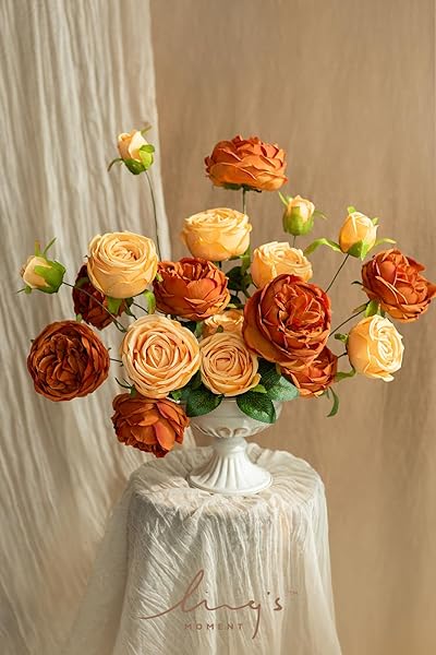 - Ling's moment Artificial Flowers Terracotta Silk Austin Roses Orange Silk Roses w/Stem for Fall Wedding Bouquets Centerpieces Party Home Decoration offers reliable performance and quality- This is a silk flower combo pack of different types of flowers and colors as a theme. Ready for you to create your bouquet, centerpieces, boutonnieres, corsage, etc- Package Details- burnt orange austin rose x8, turmeric cabbage rose x8, turmeric rose bud x4, rose leaf x8