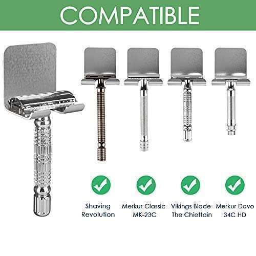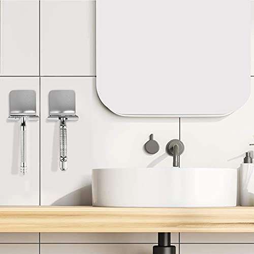* Linkidea 2 Pack Wall Mount Shaver Holder for Shower, Self Adhesive Hook Hanger Stand, Bathroom Wall Mounted Razor Holder Compatible with Vikings, Merkur Double Edge Safety Razor: features: * Hanging razor holder keeps razors safe * Dry and clean * Helps organize bathroom space and keeps neat * Razor holder no tools