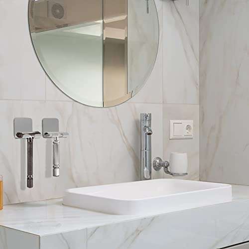 Linkidea 2 Pack Wall Mount Razor Holder - Self Adhesive Shower Shaver Hook for Vikings & Merkur Safety Razors