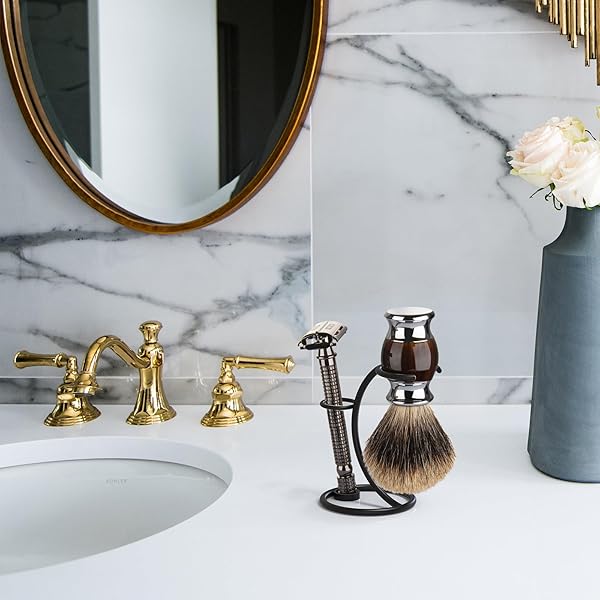 - Linkidea Shaver Kit Storage Stand, Stainless Steel Holder for Safety Razor and Shaving Brush Hold, Shaving Kit Stand Fit to Shower Room, Bathroom, Compatible with Manual Razor (Black), RRS30-02 with reliable performance and quality- Razor holder made of chrome-plated stainless steel, sturdy, good durability and convenient- The shaving holder with modern design is simple and practical.- Razor stand keeps your grooming table neat and organized.- Razor Stand Dime