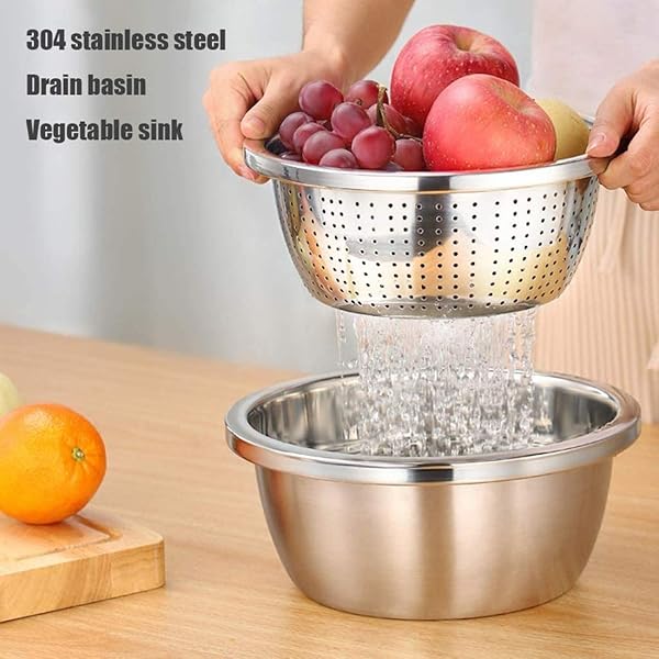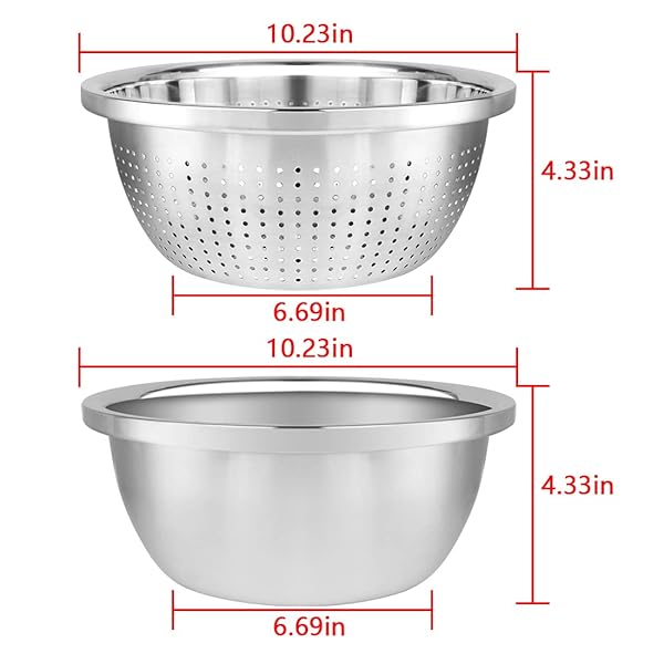 Linkidea 304 Stainless Steel Colander with Bowl Set of 2, Kitchen Strainer, Washer, Drainer Basket with Basin for Vegetable, Fruits, Pasta, Salad Mixing, Food Prep, Heavy Duty & Dishwasher Safe