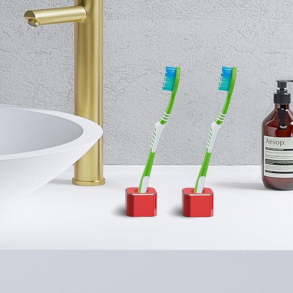 Linkidea Mini Toothbrush Holder 2-Pack: Stylish Aluminum Stand for Bathroom & Office Organization (Red)