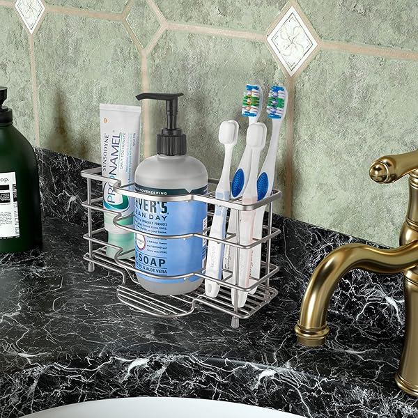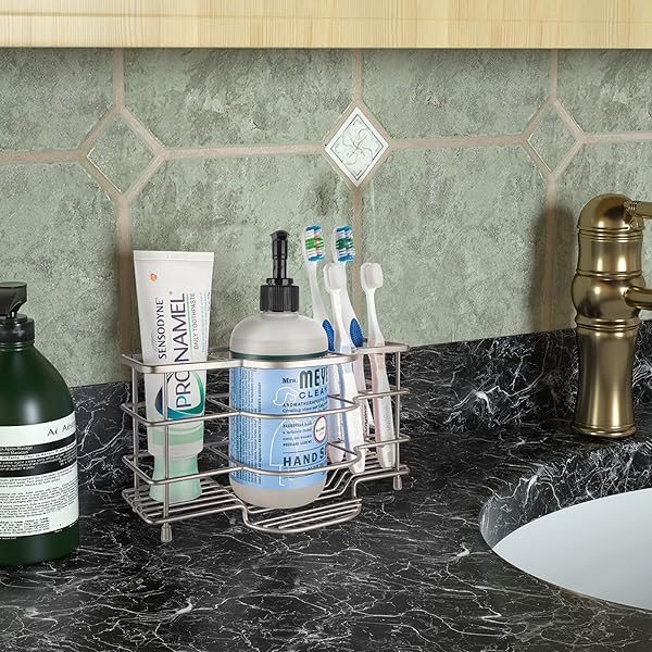 * Linkidea Stainless Steel Electric Toothbrush Holder, Ventilated Tooth Brush Storage Organizer, 6 Slots Multifunctional Rack for Toothpaste, Razor, Shaver, Comb (Brushed Nickel): this large toothbrush caddy with 6 slots providing organized storage for a range of oral care items including toothbrushes * Toothpaste * Tooth cup * Razor * Hand soap