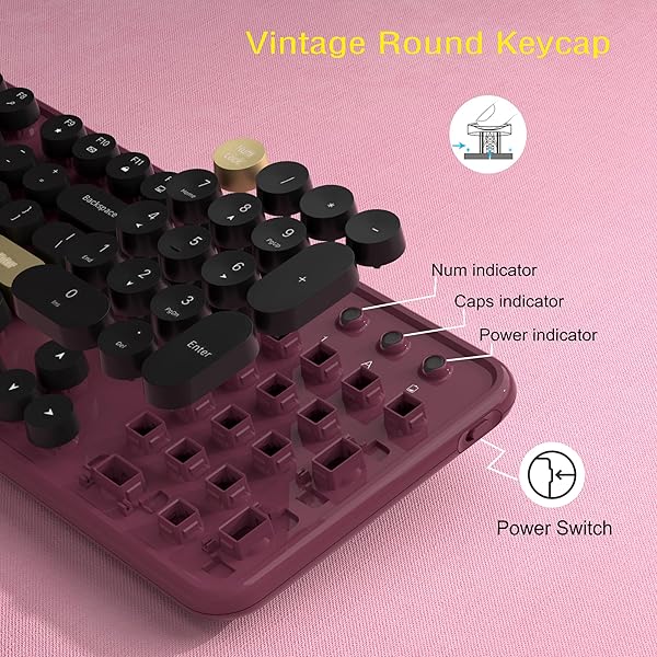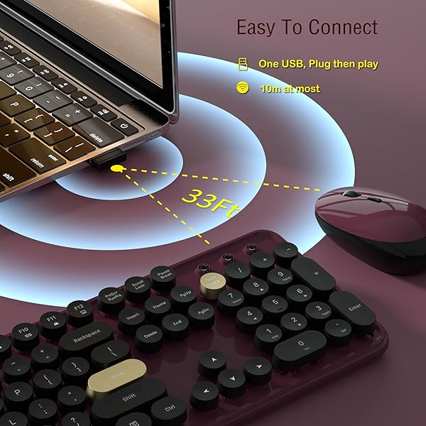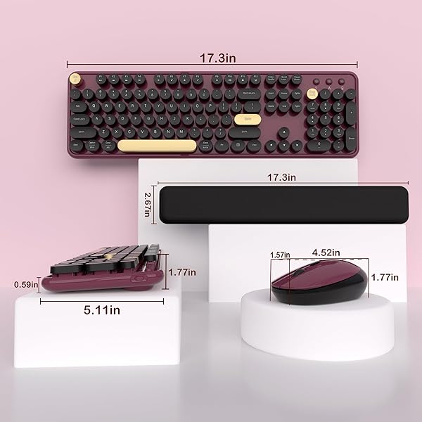 - Links9+ Wireless Keyboard and Mouse Combos, Retro Keyboard and Mouse Wireless Full Size, 2.4Ghz Connection and Optical Mouse for Windows, Mac, PC, Laptop for Home and Office (Burgundy-Black) offers reliable performance and quality- Vintage Typewriter StyleThis wireless keyboard adds a touch of elegance to your workspace with its classic retro design. Each keycap exudes nostalgia, transporting you back to that exciting era of typewriters
