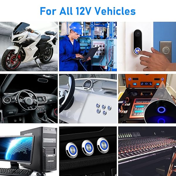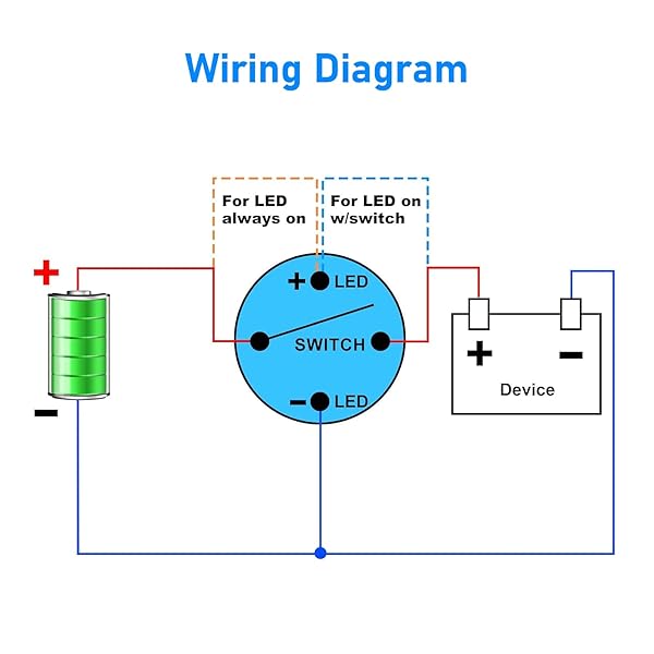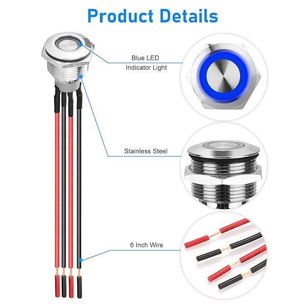 - Linkstyle 5Pcs 19mm Latching Push Button Switch, 12V Metal Self Locking SPST ON-Off Switch with Wiring Harness & Blue Light for Boat Car offers reliable performance and quality- On/Off Push Button: 4-pin metal switch with 19mm mounting hole, 12mm button; latching action stays on/off with each push- Blue LED Indicator: Separate LED ring of the on/off push button switch can stay lit always or only when switch is on, based on wiring