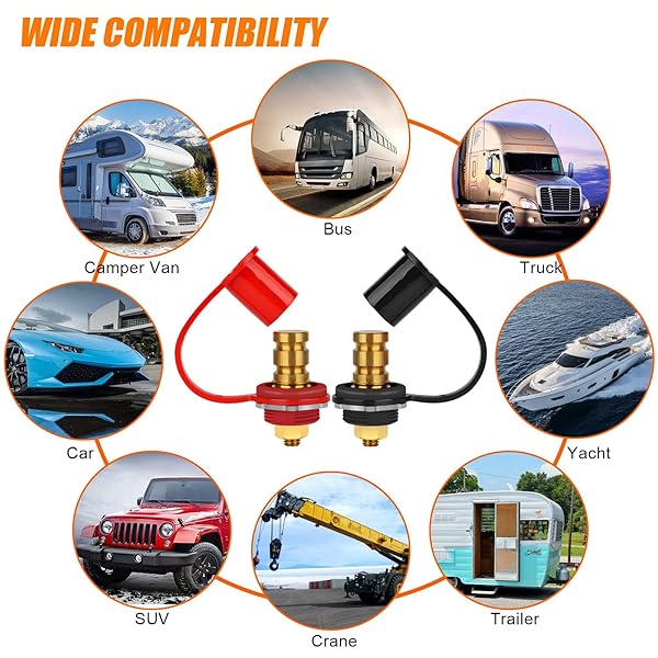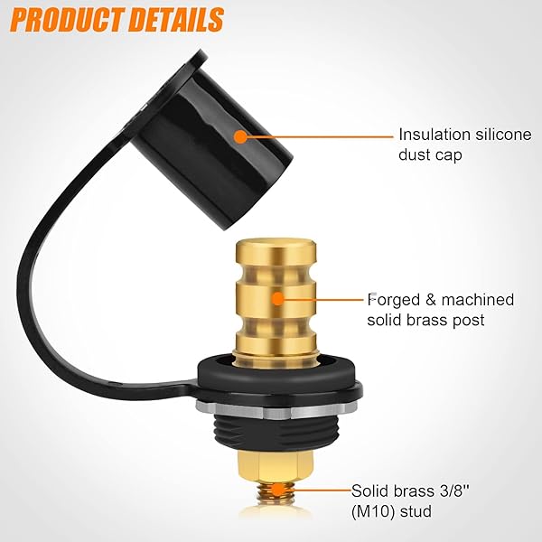 - Linkstyle 2PCS Battery Charger Post, 250A Remote Battery Terminals Connectors, 3/8" Stud Jump Post, for Marine Boat UTV ATV Car RV Truck with reliable performance and quality- High Quality Materials: Heavy-duty battery post terminals made of brass, offer exceptional stability, wear resistance, and corrosion protection for optimal conductivity- Specification: The terminal of the battery jumper terminals are 3/8" (M10)stud design, rated at 250A 12V- Insulating Dust Cap