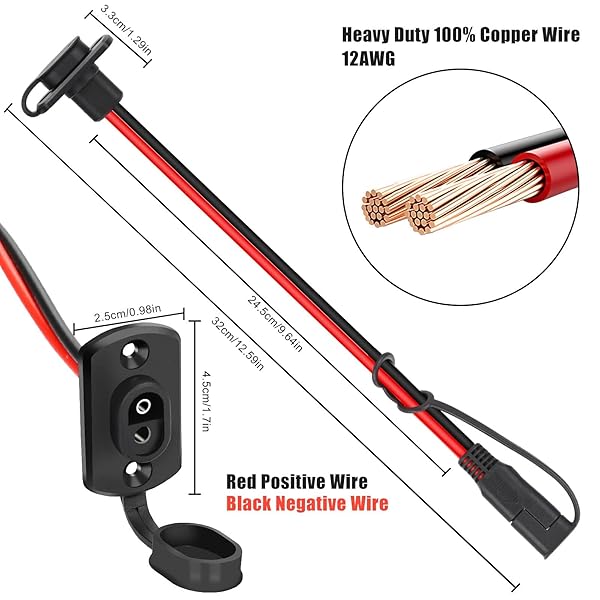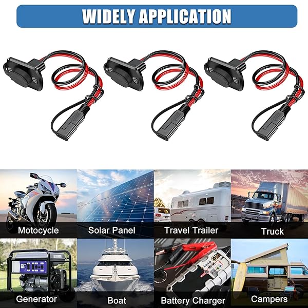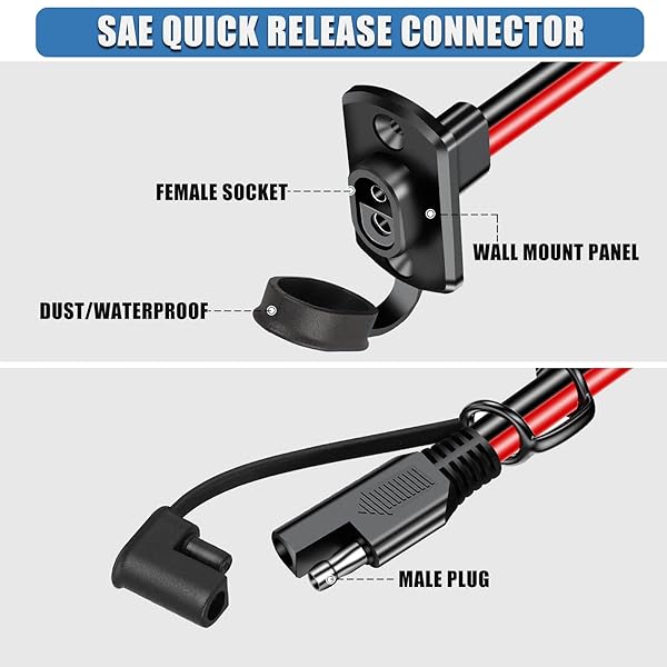 - Linkstyle 3PCS SAE Quick Connector Harness, 1FT 12AWG SAE Adapter Male Plug to Female Socket Cable, for Solar Panel Battery Charger Cable with reliable performance and quality- Heavy Duty 12AWG Cables: The SAE Connector made of high-quality PVC and pure copper, ensuring fast transmission, low loss, wear resistance, and durability- Specification: Cable Length: 1FT (12 inches / 30cm), SPT-2 12AWG heavy-duty 100% copper wire. Compatible with 12-36V devices, 10A-30A current, 12