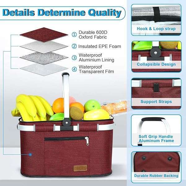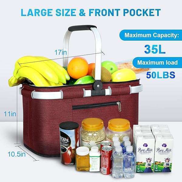 - LIQING 35L Large Picnic Basket 2 Layers of Internal Pockets Leak-Proof and Insulated Folding with Internal Support for enhansed Stability, Wedding Gifts for Couple(Wine red) offers reliable performance and quality