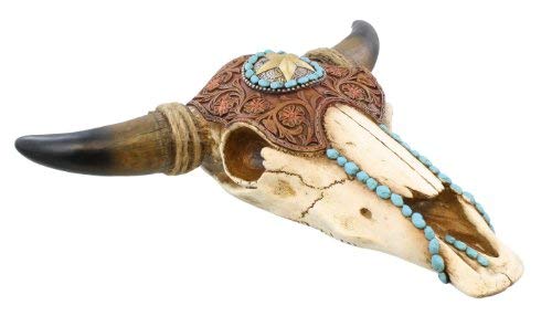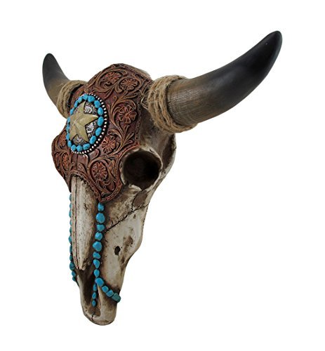 - De Leon Collections Distressed Tooled Leather Cow Bull Skull with Gold Star & Turquoise Accent Southwestern Country Hanging Wall Decor: reliable performance and quality- UNIQUE STYLE: From the green pastures to the dusty plains, nothing- QUALITY CRAFTSMANSHIP: These beautiful faux taxidermy bull skulls are- VERSATILE DECOR: This intricately carved bull skull is an excellent- EASY MOUNTING: These cow skulls are equipped with a sturdy sawtooth