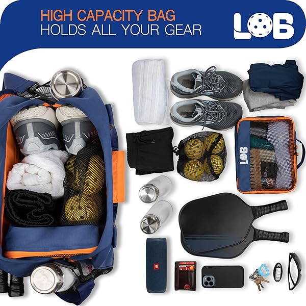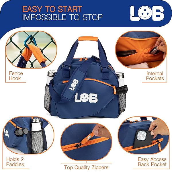 - LOB Pickleball Bags for women men Tote Carry Bag with Bottle Holders, Fits 2 Paddles, 2pc Accessories (Pouch, Mesh Ball Bag), Durable Lightweight, BLUE and ORANGE with reliable performance and quality- Spacious Pickleball Tote Carry Bag Fits 2 Paddles: This lightweight pickleball bag offers ample space for 2 paddles, shoes, clothes, and gear in a dedicated paddle pocket, keeping your equipment organized and protected for every match.- 2-Piece Accessory Set Included: Enhanc