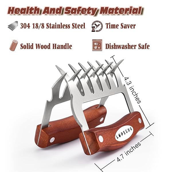 - LOPE & NG Meat Handler Shredder Claws Set Of 2 - Wood Stainless Steel BBQ Pulled Pork Paws For Shredding Handing Carving Food offers reliable performance and quality- Product Material - This Barbecue Claw Is Made Of Stainless Steel, Not Easy To Corrode, High Temperature Resistance, Wooden Handle, Non-slip And Better Thermal Conductivity Reduction, Safer And Healthier To Use