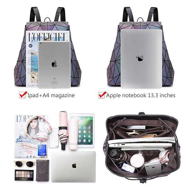LOVEVOOK Geometric Luminous Backpack: Stylish Holographic Reflective Bag for Women