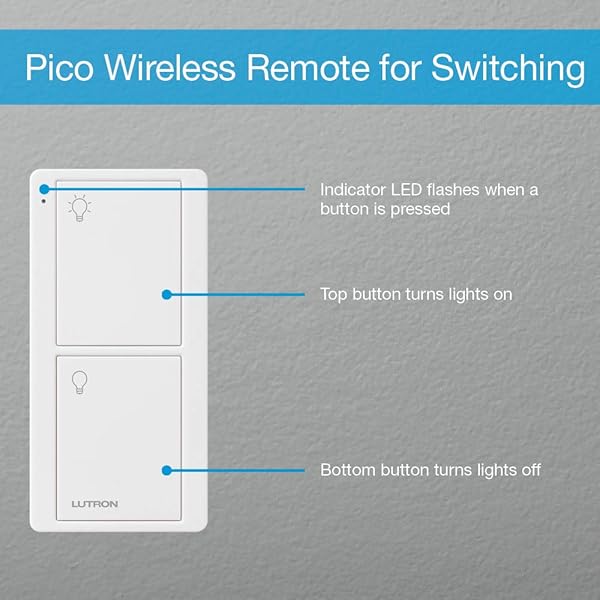 - Lutron Pico Remote for Caseta Smart Switch, 2-Button Control , On/Off Control, For Table Top or Wallmount Use, PJ2-2B-GBL-L01, Black offers reliable performance and quality- This handy wireless remote controls Caseta in wall smart switches from anywhere within the home- Turn on and off multiple lights with the touch of a button- Use as handheld remote, mount on a tabletop pedestal (L-PED1 WH) or attach to the wall with a bracket (PICO WBX ADAPT)