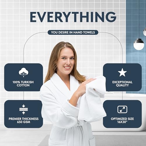 - Luxury White Hand Towels - Soft 100% Turkish Cotton | Highly Absorbent Hotel spa Bathroom Towel Collection | 16x30 Inch | Set of 6 offers reliable performance and quality- HOTEL COLLECTION - 6-Piece Hand Towels are generously Sized at 16x30 inches. Each towel is 100% turkish cotton - soft, durable, quick-dry, and wonderfully absorbent