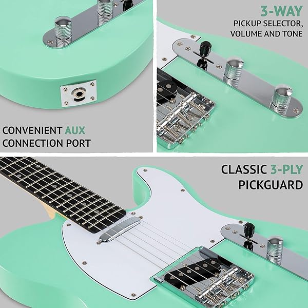 - LyxPro 39 Electric Guitar TL Series, Full-Size Paulownia Wood Body, 3-Ply Pickguard, C-Shape Neck, Ashtray Bridge, Quality Gear Tuners, 3-Way Switch & Volume/Tone Controls, 2 Picks Included, Green offers reliable performance and quality