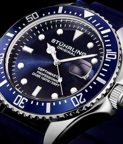 - Stuhrling Original Men's Watch Dive Watch Silver 42 MM Case with Screw Down Crown Rubber Strap Water Resistant to 330 FT (Black) offers reliable performance and quality- Luminescent Hands And Indices, Collected In A Coin Edge Bezel And Screw Down Crown- Japanese Miyota Movement For Precision Time Keeping On Your Wrist Watch- Finished With A High Grade Rubber Strap And Tang Buckle That Brings Style To A Sturdy Sport Watch