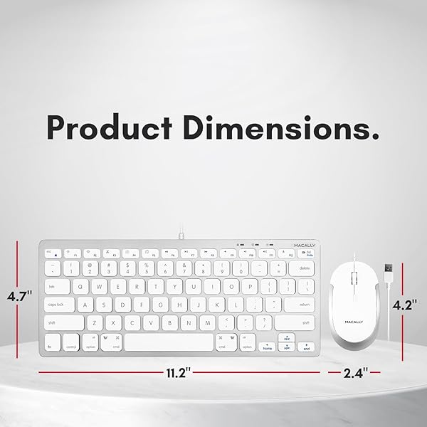 * Macally USB Wired Keyboard and Mouse Combo for Mac and PC - Save Space with a Compact Small Apple Keyboard and Mouse for MacBook Pro/Air, iMac Mini/Pro: ditch the typical and boring computer setup and enhance both the aesthetics and productivity of your workspace with our wired keyboard and mouse combo * Although small in size * It has everything you need * 78 low profile scissor-switch keys for smooth typing * 13 shortcut keys for one-touch commands