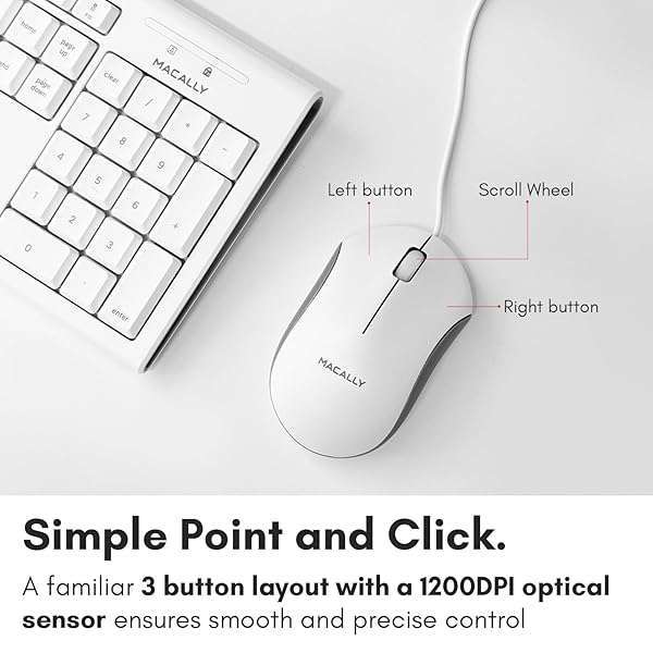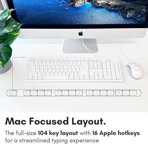 - Macally Full Size USB Keyboard and Optical USB Mouse Combo for Mac offers reliable performance and quality- THE PERFECT COMPANION TO YOUR MAC COMPUTERS & MACBOOKS: With 104 keys, 16 Apple specific shortcut keys, and a numeric pad, our mac wired keyboard is a perfect and sleek external kb to match your Apple device; Also, just plug and play (no drivers needed)