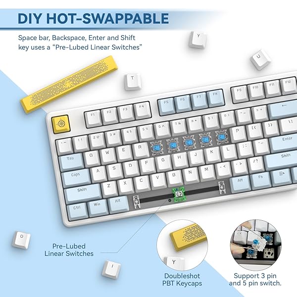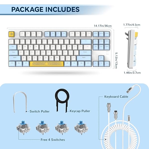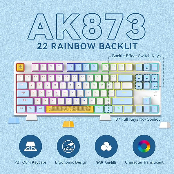 - MAGIC-REFINER AK873 Gaming Keyboard,Rainbow Led Backlit,Hot-Swappable Blue Switch,PBT Keycap,75% TKL Layout,Ergonomic Mechanical Keyboard with Custom Coiled USB/Type-C Aviation Cable(Blue White) with reliable performance and quality- [75% TKL Mini Layout] The compact tenkeyless layout improves desktop cleanliness and overall user experience while retaining all necessary functions.Ergonomically designed,the keyboard is equipped with adjustable stand, which minimizes the burden of u