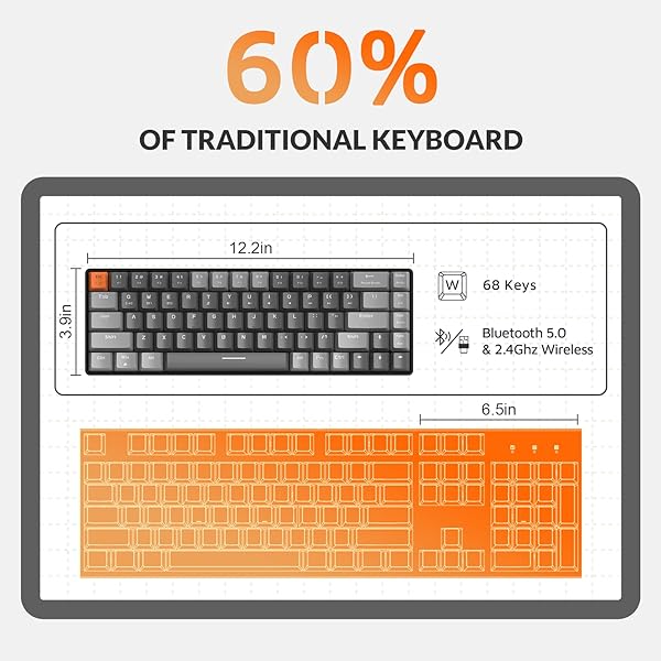 * MAGIC-REFINER RK68 60% Wireless Mechanical Keyboard, Bluetooth 5.0/2.4GHz with Dual Mode 2-in-1 Receiver, Compact 68-Key Hot Swappable Gaming Keyboard, Linear Red Switch for PC Mac Xbox Smartphone: dual-mode 2.4ghz & bluetooth 5.0this wireless keyboard equipped with an upgraded bluetooth chip which ensures stable and fast connectivity and low latency * As well as lessen the cable in your desk * The keyboard can connect with up to three devices and switch among them easily for multitasking