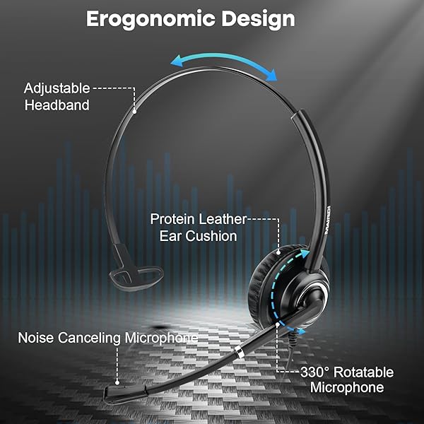 MAIRDI Telephone Headset RJ9 & 3.5mm for Landline, PC, Cisco Phones - Ideal Office Headset with Microphone for Call Centers
