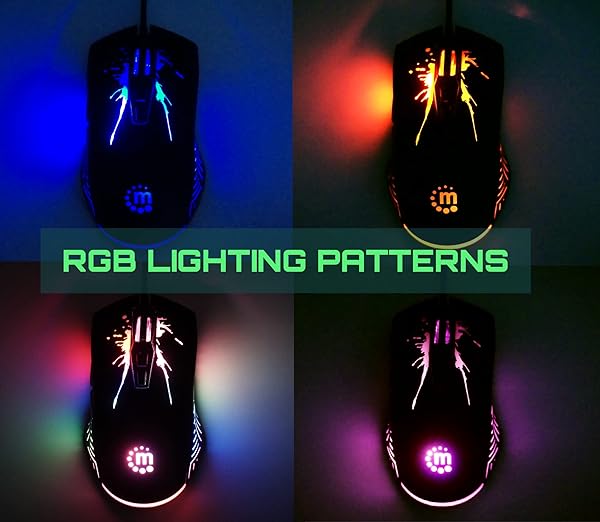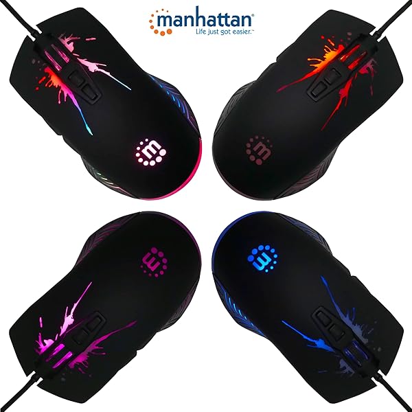 - MANHATTAN RGB LED Wired Optical USB Gaming Mouse - 7200 DPI, Ergonomic Shape, 7 Buttons, Color-Changing LEDs, Low-Friction Base, Computer Mouse for Laptop, Extra-Long Braided Cable - 190121: reliable performance and quality- RGB LED Wired Optical USB Gaming Mouse: Experience- Seven Easy-to-Reach Buttons: Enhance your gaming- Color-Changing LEDs: Light up your gaming setup with a- Ergonomic Shape and Wrist Support: Our wired computer