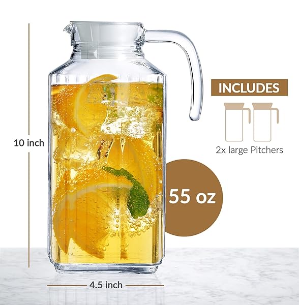 - Glass Pitcher with Lid Set of 2 Glass Water Pitcher 55Oz Cold Carafe for Ice Tea, Water, Lemonade, Coffee Elegant and Modern Practical Spout Pitchers for Drinks: reliable performance and quality- This set includes 2 x 55Oz large pitchers perfect for- This glass pitcher with lid and spout is equipped with- This juice pitcher is made using finest quality,- Tired of constantly having to improvise when it comes
