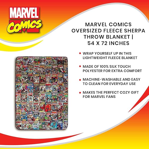 - Marvel Comics Oversized Fleece Throw Blanket with Spider-Man, Captain America, Black Panther, More | Superhero Geeky Home Decor | Soft and Cozy Sherpa Blanket | 54 x 72 Inches offers reliable performance and quality- Surreal Entertainment Marvel Plush Fleece Throw Sherpa Blanket- FUN & FUNCTIONAL: Great for bedroom, camping, road trips, concerts, outdoor sporting events and more!- OFFICIALLY LICENSED: Our fleece blanket is an officially licensed product