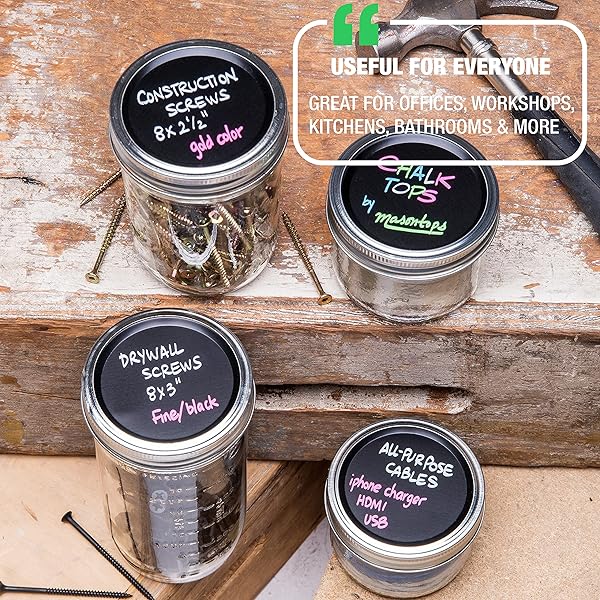- Masontops Blackboard Lids Reg Mouth Chalk Top 8Pk, 1 EA: reliable performance and quality- COMPLETE CHALKBOARD LIDS FOR MASON JARS - No need to purchase sticker labels and new lids- COMPLETE CHALKBOARD LIDS FOR MASON JARS - No need to purchase sticker labels and new lids- WHY YOU'LL LOVE CHALK TOPS - Our chalkboard lids fit and seal perfectly right out of the- EASY TO CLEAN AND RELABEL - Simply wipe with a damp cloth, put in the dishwasher or run
