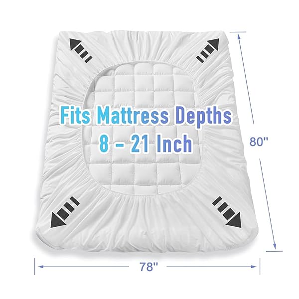 * MATBEBY King Size Mattress Pad - Cooling Breathable Mattress Topper, Quilted Fitted Mattress Protector, Pillow Top Mattress Cover with 8-21" Deep Pocket, Soft, Machine Washable, White, 78x80 Inches: soft & comfortableenjoy comfort and softness with matbeby king size mattress pad(78"x80") * Featuring premium polyester microfiber filling for optimal relaxation * It not only enhances your sleep experience but also protects your mattress from stains and wear * Ensuring it stays clean and in