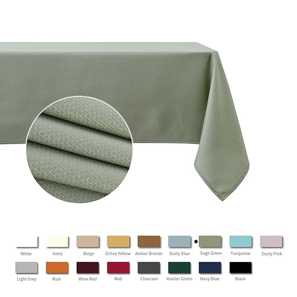 - maxmill Jacquard Square Tablecloth Stain Resistant Spillproof Wrinkle Free Washable Soft Table Cloth, Decorative Fabric Table Cover for Dining Room, Indoor and Outdoor Use, 52 x 52 Inch Sage Green: reliable performance and quality- Diverse Choices: These classic Textured Design- Premium Quality: This durable tablecloth is made of- Versatile Occasions: This classic textured pattern- Exquisite Workmanship: Our tablecloth is made by