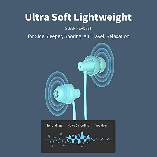 MAXROCK Total Soft Silicon Headphones with Mic for Sleep and Travel Compatible with Cellphones Tablets Light Green
