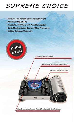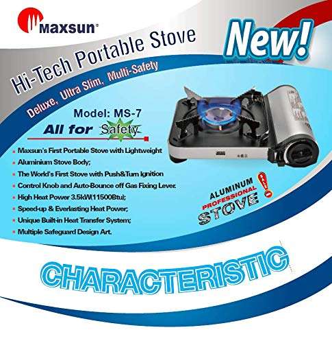- Maxsun Portable Gas Stove MS-7 (Silver) 11,500 BTU, Extreme High Power, Camp Stove, w/Carrying Case offers reliable performance and quality- High performance for daily use- Durable construction and reliable quality- User friendly design for convenience- A great value addition to your collection