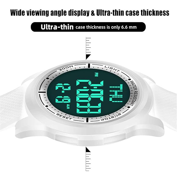 * Beeasy Digital Watch Waterproof with Stopwatch Alarm Countdown Dual Time, Ultra-Thin Super Wide-Angle Display Digital Wrist Watches for Men Women: description * Ultra-Thin Digital Watch Sleek * Waterproof & Multi-Functional Versatile & Stylish Design Designed for both men and women * This ultra-thin (6.6mm) digital watch combines modern minimalism with high functionality * Its sleek case and textured band offer a lightweight